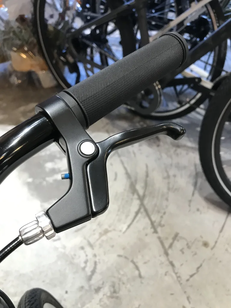 ブレーキは制動力の高いVブレーキでレバーはキッズ用レバーでお子さんでもコントロールしやすいですね〜