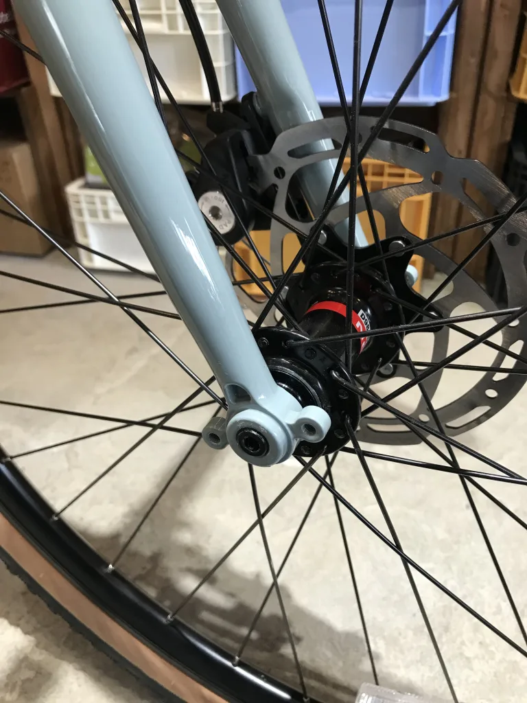 ブレーキは機械式ディスクブレーキでフラットマウントタイプ。
