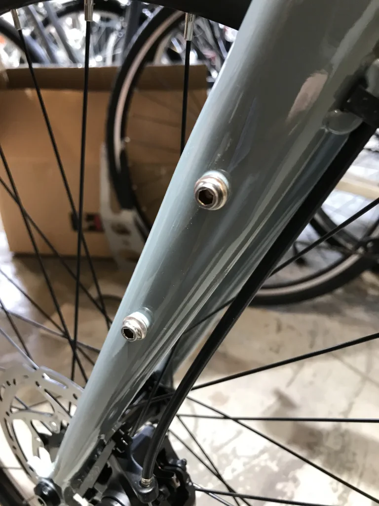 フロントフォークとダウンチューブ下にもダボ穴があるのでバイクパッキングにもいいですよ〜