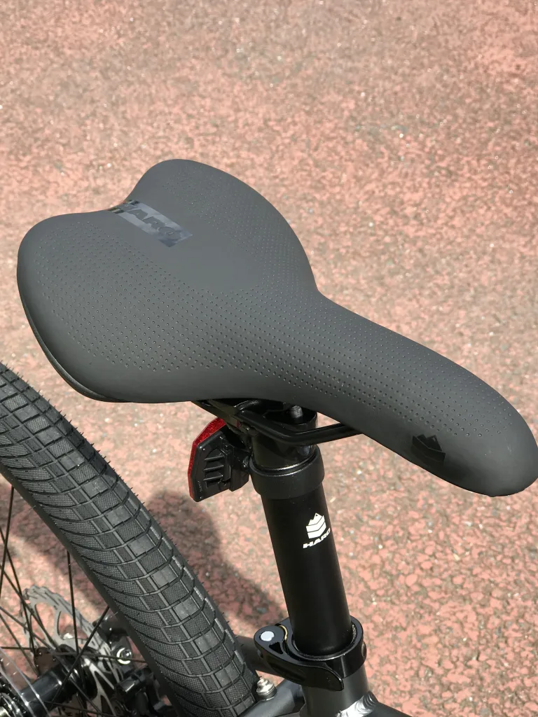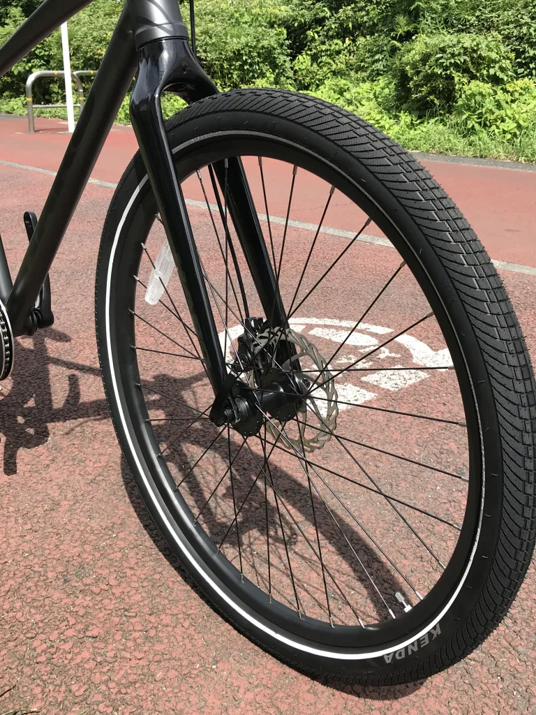 またタイヤは27.5×2.0と太めのスリックタイヤでパンクのリスクや段差の乗り降りも安心です。